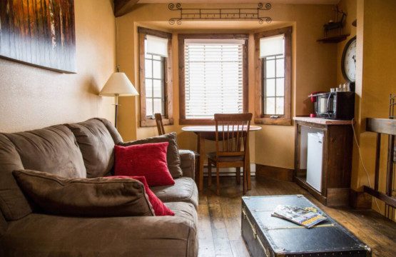 Sundance Suite is a 1 bedroom suite with lofted ceilings that very comfortably sleeps 2. There is a Jacuzzi Tub for 2! This suite is tastefully decorated with a double-sided fireplace in the bedroom and bathroom. Also included in this suite is a smart TV, Microwave, and Mini-Fridge (NO KITCHEN). For coffee lovers, the Philips Super Automatic Espresso Machine lets you enjoy a café-quality experience from the comfort of your own room.