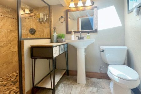 But that’s not all – the cabin also includes a luxurious in-room Jacuzzi tub, perfect for soaking away. So, whether you’re looking for a romantic getaway or a peaceful solo retreat, the Prospect Miners Cabin is a great choice.