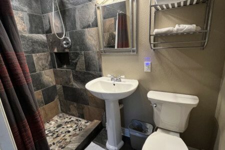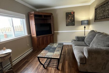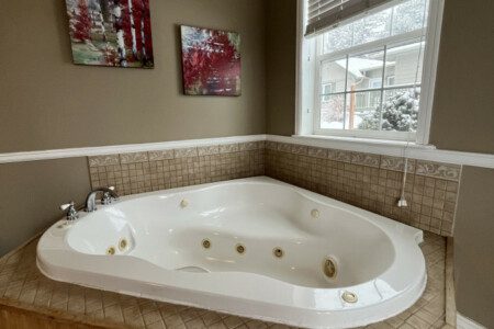 Inside, you’ll find a spacious and comfortable living area with a smart TV and a plush couch, perfect for snuggling up with a loved one. The master bedroom features a queen-size bed and plenty of space, while the two-person Jacuzzi tub provides the ultimate in relaxation and indulgence. The private fenced-in side yard is perfect for enjoying the great outdoors and is a great space for dogs to run around in.