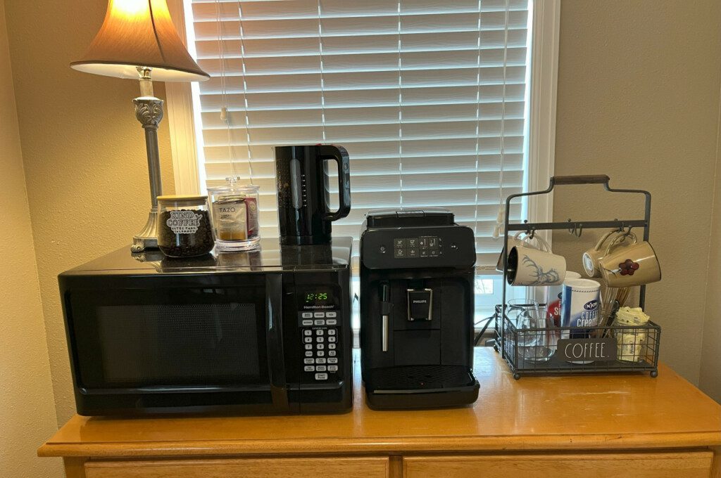 While this unit does not have a full kitchen, it does come equipped with a microwave, and mini fridge, making it easy to enjoy light snacks and meals during your stay. And for coffee lovers, the Philips Super Automatic Espresso Machine lets you enjoy a café-quality experience from the comfort of your own room.